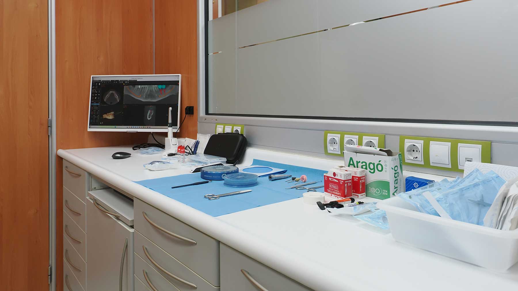 Se realizan a partir de la programación digital de la cirugía. Se confeccionan por impresión 3D SLA y ejercen de plantillas en el momento de colocar los implantes, reproduciendo en boca exactamente el mismo diseño previsto en el ordenador. Guían la colocación de los implantes y protegen el trayecto del nervio dentario y de todas las estructuras orales importantes.