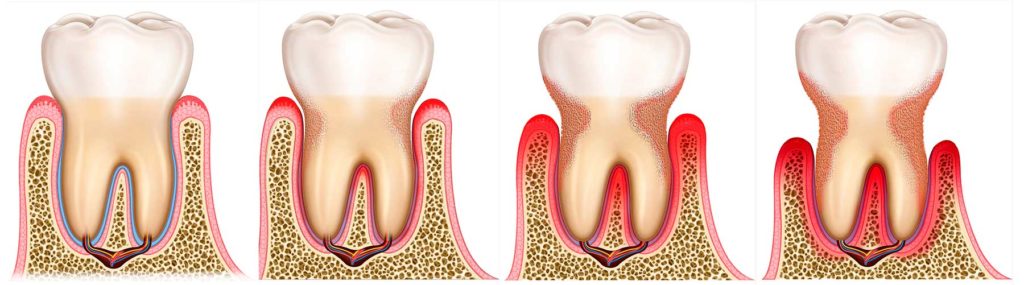 La periodontitis es junto con las caries dental, la causa principal de pérdida de dientes. Si no se trata, puede tener consecuencias de tipo estético, funcional, psíquico y económico. La periodontitis normalmente no provoca dolor, por lo que no se le da importancia hasta que los daños son irreparables. Su detección es muy sencilla: los primeros síntomas son el sangrado (NO SIEMPRE) y retracción de la encía. Ello es consecuencia de la inflamación producida por el cálculo y las bacterias.